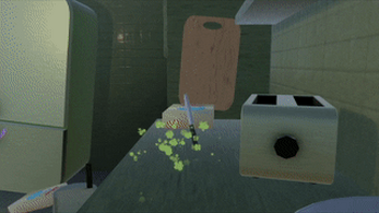 The Jam limitation was Ridiculously overpowered. Knives in real life don't have superpowers. In our game, a knife forgotten behind a counter is blessed by the "Blade God", and is now able to jump and leap through the air, with the final goal of returning to the knife holder on the other side of the kitchen.
